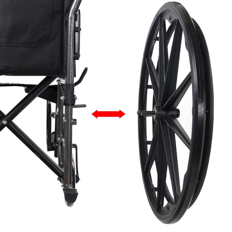 SCHNELL ABNEHMBARE RÄDER: Dank des Quick-Release-Systems können die Hinterräder ohne Werkzeug abgenommen werden, was den Transport und die Lagerung erleichtert.