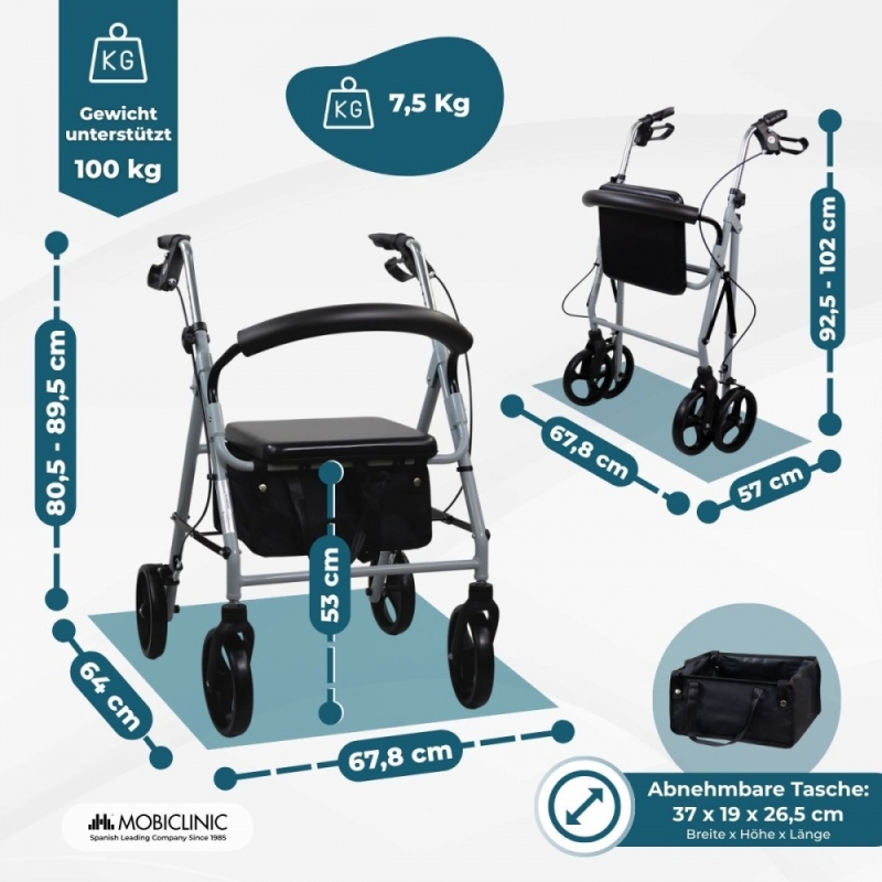 Das Modell "Sofia" ist ein Rollator Walker für Erwachsene mit einem eleganten und innovativen Design, mit einer großartigen Aluminiumstruktur, die es leicht macht und eine ausgezeichnete Mobilität und Stabilität beim Gehen bietet. Wenn Sie einen hochwertigen Gehwagen für Senioren oder Menschen mit Mobilitätseinschränkung benötigen, ist dies die beste Lösung aufgrund des außergewöhnlichen Preis-Leistungs-Verhältnis.