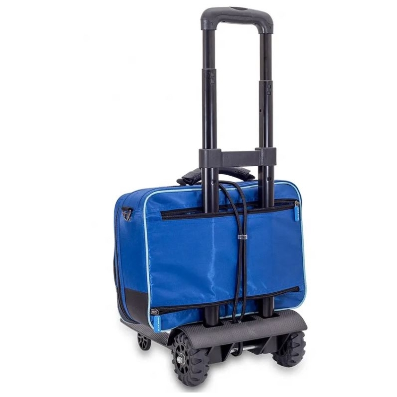 Er kann am Griff, auf dem Rücken oder auf der Schulter getragen werden. Die Rückentasche kann in einen Trolley-Gurt umgewandelt werden.