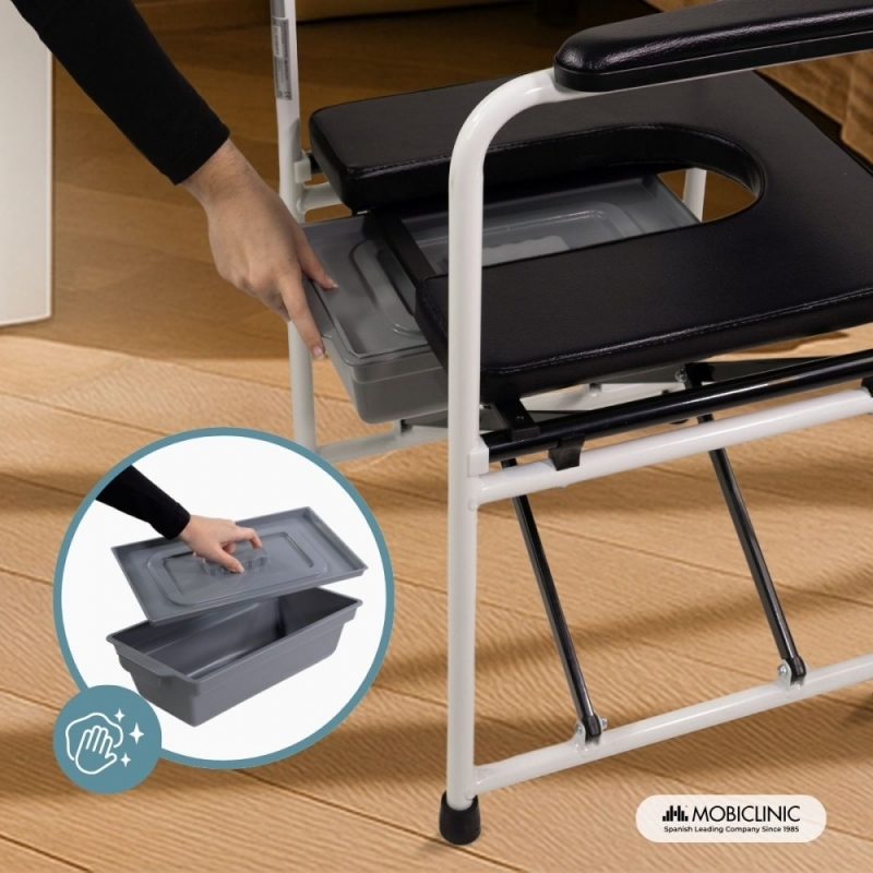 Der WC-Stuhl Ebro ist ideal und eignet sich besonders für Menschen, die Schwierigkeiten beim Zugang zur Toilette haben oder Bewegungseinschränkungen haben. Dieser Toilettenstuhl für Männer und Frauen wird Ihnen in Ihrem täglichen Leben helfen und Sie in alltäglichen Momenten wie beim auf die Toilette gehen entlasten.