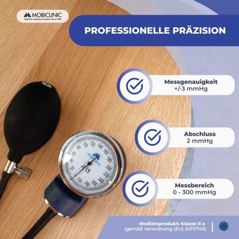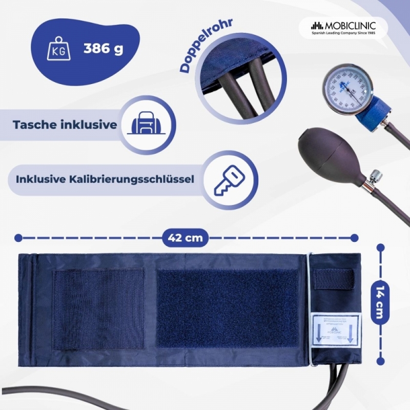 Aneroid-Blutdruckmessgerät | Blutdruck | Zwei Ausgänge | Komfortabel | Anpassbar | Blau | Mobiclinic