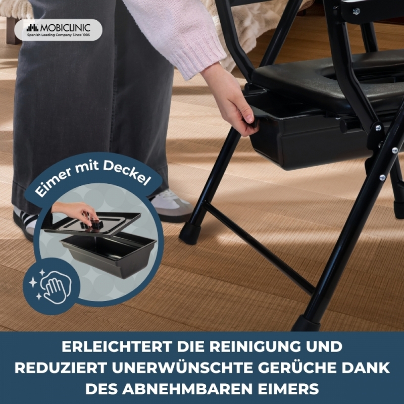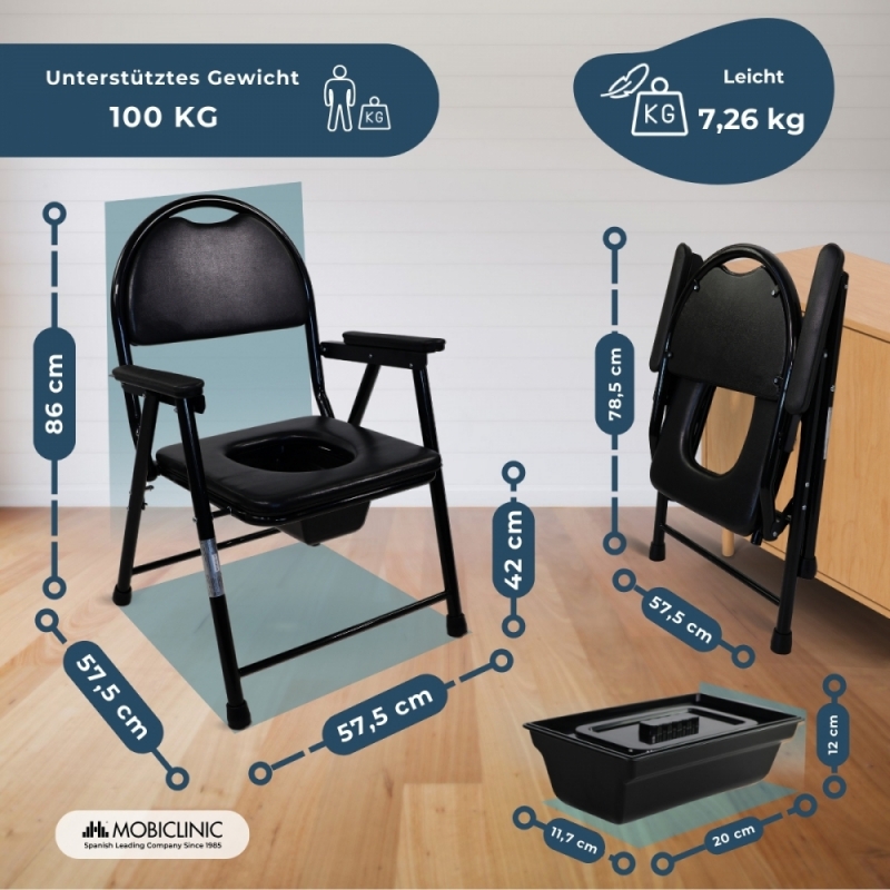 Der Guadalquivir-Toilettensitz ist ideal für Menschen, die Schwierigkeiten haben, die Toilette zu erreichen oder die in ihrer Mobilität eingeschränkt sind. Dieser Toilettenstuhl wird ihnen im täglichen Leben helfen und sie in so wichtigen Momenten wie dem Gang zur Toilette entlasten. Er hat ein Fassungsvermögen von 5 Litern.