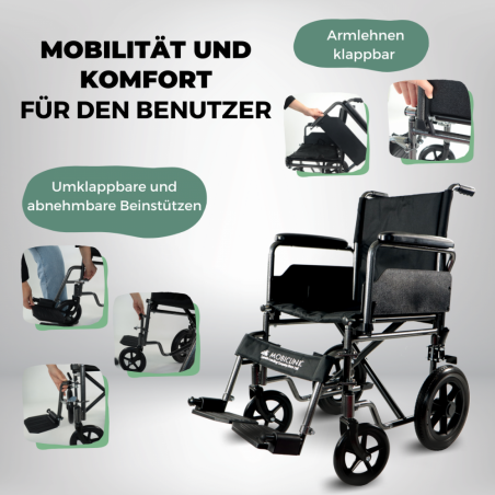 Außerdem lässt er sich zum einfachen Transport und zur Aufbewahrung zusammenfalten, was ihn zu einem leichten und leichten Rollstuhl macht. Und als ob das noch nicht genug wäre, sind seine Räder klein und solide, gleichbedeutend mit Haltbarkeit und Sicherheit, Eigenschaften, die ihn zu einem leicht zu bedienenden manuellen Rollstuhl machen. Darüber hinaus bietet er absolute Sicherheit, um Stürze zu vermeiden und dem Benutzer ein höheres Maß an Autonomie und Unabhängigkeit zu ermöglichen.