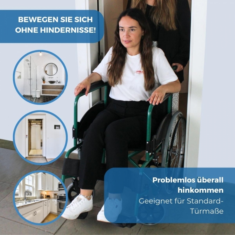 TÜREN UND KOFFERRAUM : Dieser Rollstuhl hat eine Gesamtbreite von 64 cm und passt somit durch Türen mit einer Standardbreite von 72,5 cm. Da dieser zusammengeklappte Stuhl außerdem nur 22 cm misst, kann er im Kofferraum eines Fahrzeugs vom Typ Ford Focus transportiert werden. Achten Sie auf die Maße Ihrer Türen und Ihres Fahrzeugs, um sicherzustellen, dass es zu Ihnen passt.