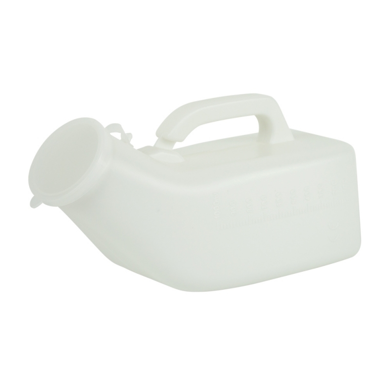 Tragbares Urinal mit einem Fassungsvermögen von 1 Liter. Konzipiert für Menschen mit Harninkontinenz oder Bettlägerigkeit, entweder aufgrund einer chronischen Krankheit oder weil sie sich für kurze oder lange Zeit einer Operation oder Rehabilitation unterziehen müssen. Es ist ein sehr geschätztes Produkt bei älteren Frauen.