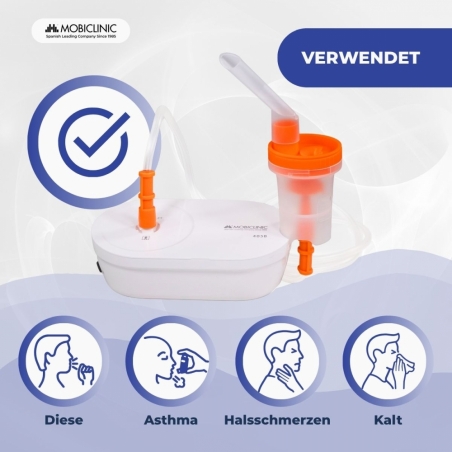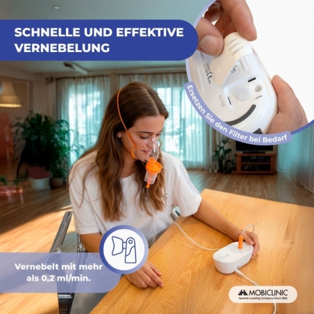 KOMPAKT UND LEICHT: Dank seiner geringen Größe und seines geringen Gewichts lässt es sich einfach verstauen, transportieren und überall verwenden. Dank der schnellen Vernebelung von 0,2 ml/min und einem Restvolumen von ca. 3,9 ml wird das Medikament optimal genutzt. Die gleichmäßige Vernebelung ermöglicht eine komfortable und schnelle Inhalation.