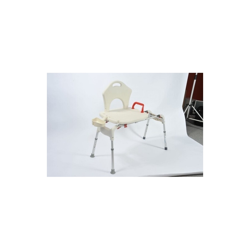 Mit dieser Bank setzt sich die Person mit eingeschränkter oder eingeschränkter Mobilität hin und gleitet zur Mitte der Badewanne, ohne aufstehen zu müssen.