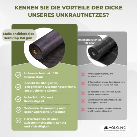 Das HerbStop Unkrautnetz ist eine umweltfreundliche und effektive Lösung zur Bekämpfung von Unkrautwachstum in Gärten, Obstgärten und Gewächshäusern. Es besteht aus strapazierfähigem Polypropylen mit einem Gewicht von 150 g/m², was eine Lebensdauer von bis zu zwei Jahren ermöglicht.