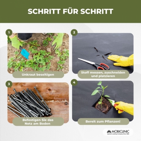 EFFEKTIV UND UMWELTFREUNDLICH: Dieses Unkrautvlies verhindert das Wachstum von Unkraut ohne den Einsatz von Chemikalien. Es wirkt als physikalische Barriere und reduziert das Unkrautwachstum, ohne die Bodengesundheit zu beeinträchtigen.