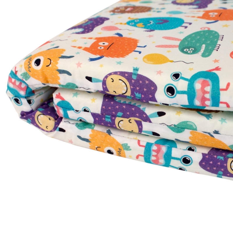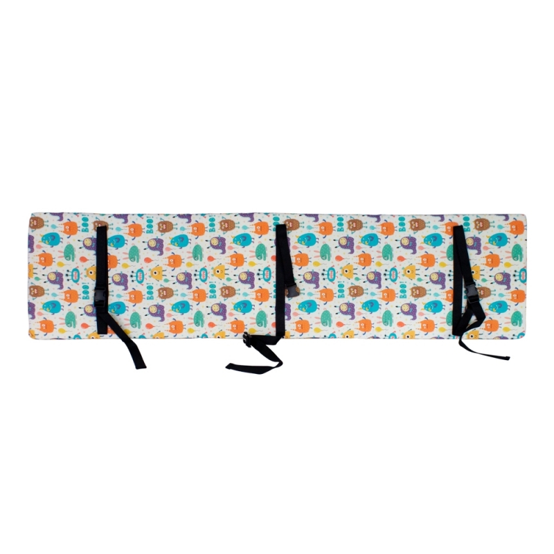 Der Protektor besteht aus hochwertigem Polyurethanschaum und ist mit einem weichen Baumwollbezug mit niedlichen Kindermotiven bezogen. Dadurch wird er nicht nur bequem, sondern auch ansprechend für Ihr Kind. Die Anpassung des Protektors an die Schiene ist dank der 3 verstellbaren Tupis denkbar einfach und ermöglicht eine individuelle Befestigung nach Ihren Wünschen und Bedürfnissen.