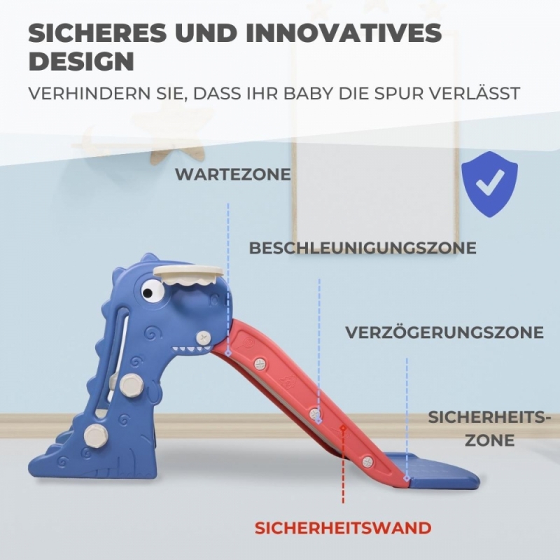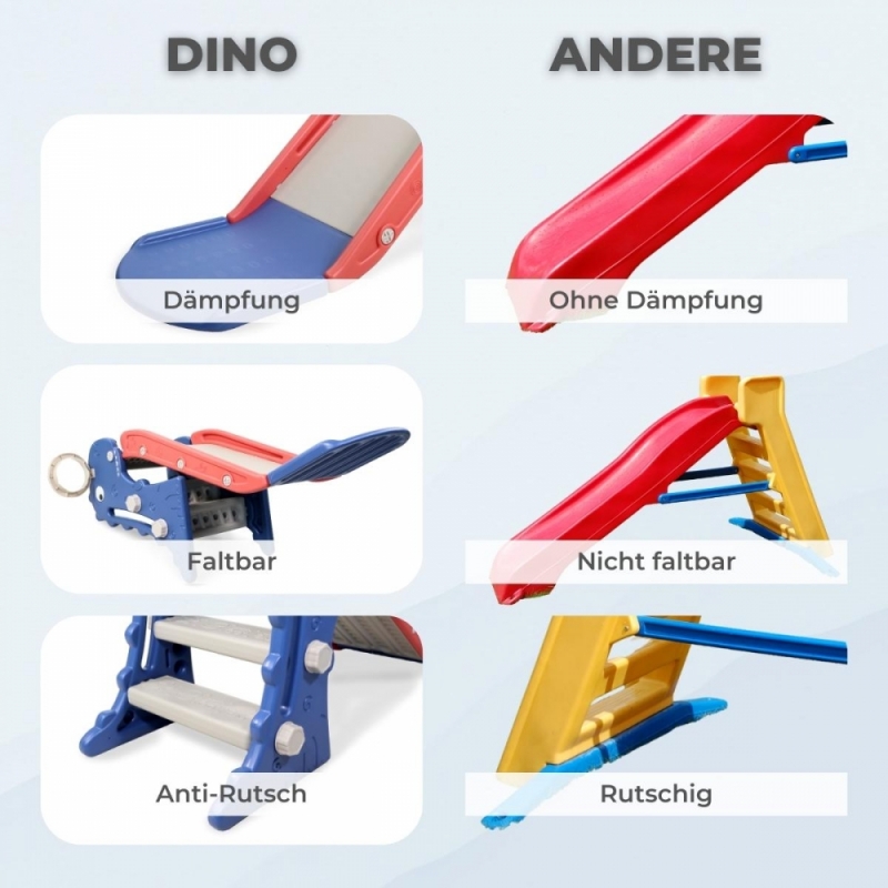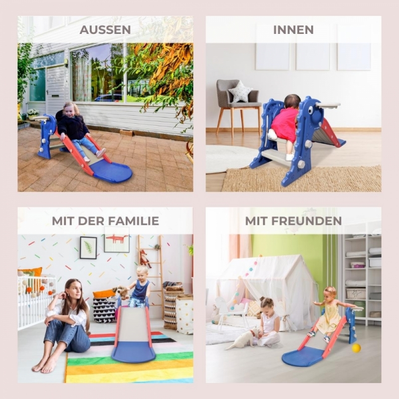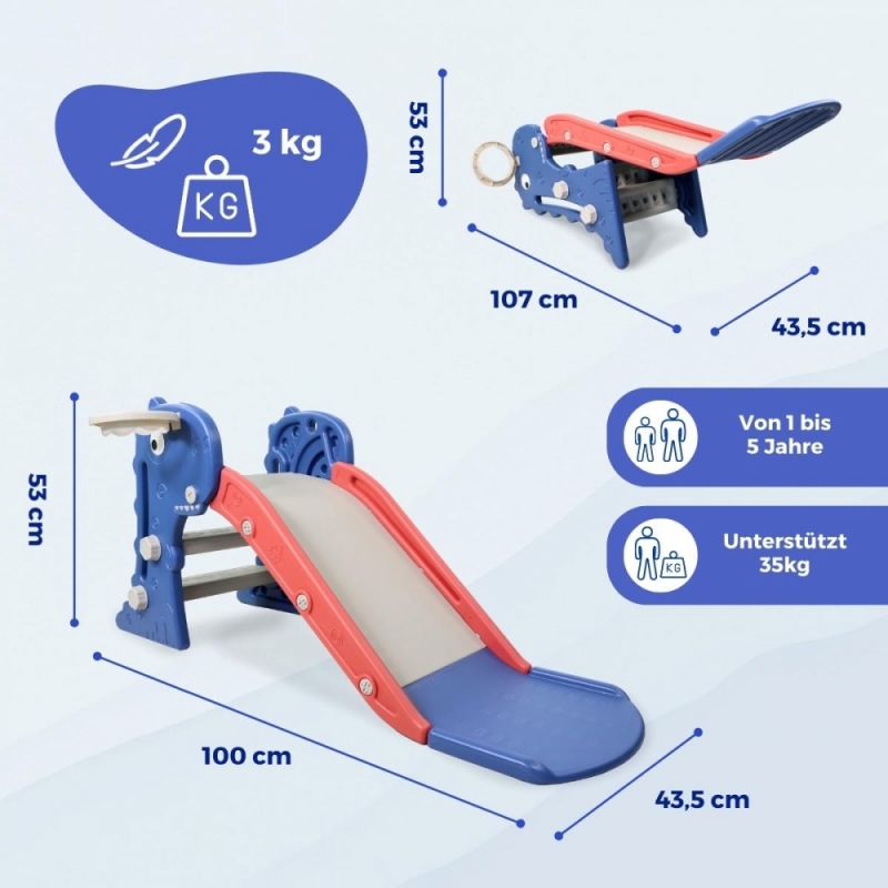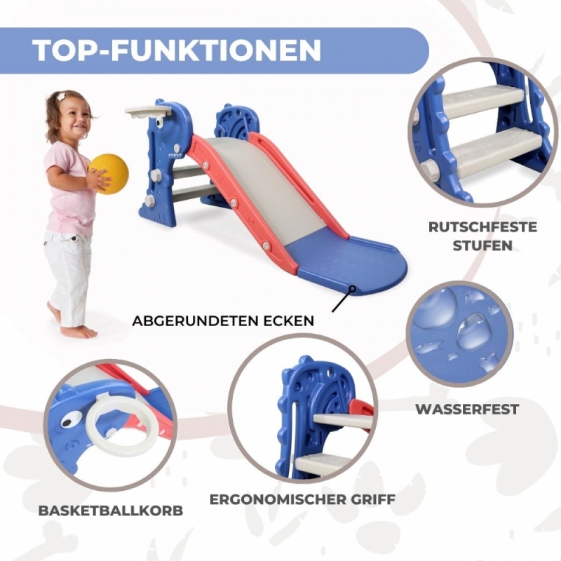 Kinderrutsche | klappbar | Korb und Ball | runde Kanten | rutschfeste Stufen | max. 35 kg | Blau | Dino| Mobiclinic