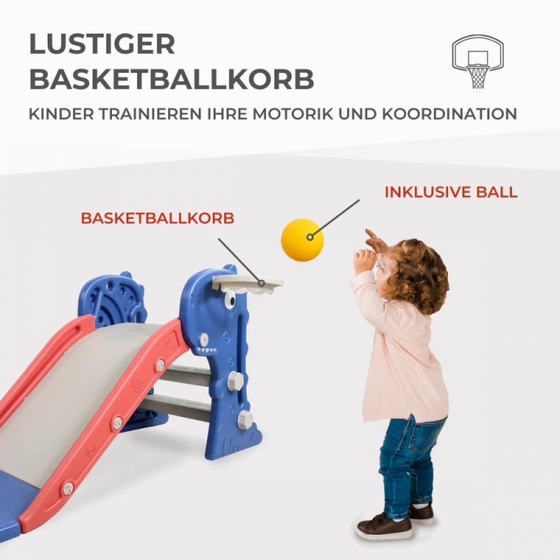 INKLUSIVE KORB UND BALL: Die Rutsche Dino beinhaltet einen Korb und einen Ball, um die Spielmöglichkeiten der Kleinen zugunsten der Motorik und Koordination zu erweitern.