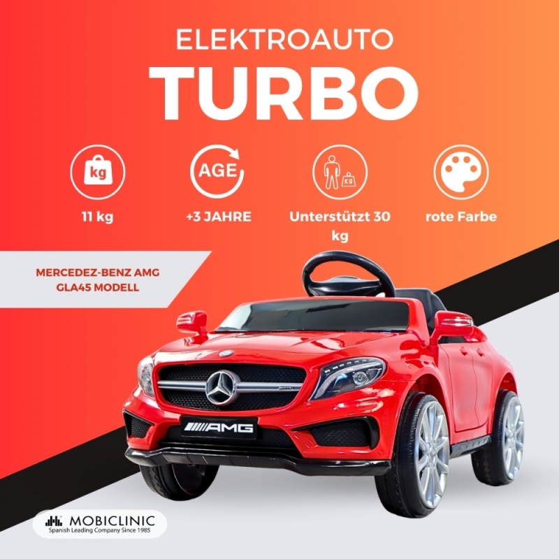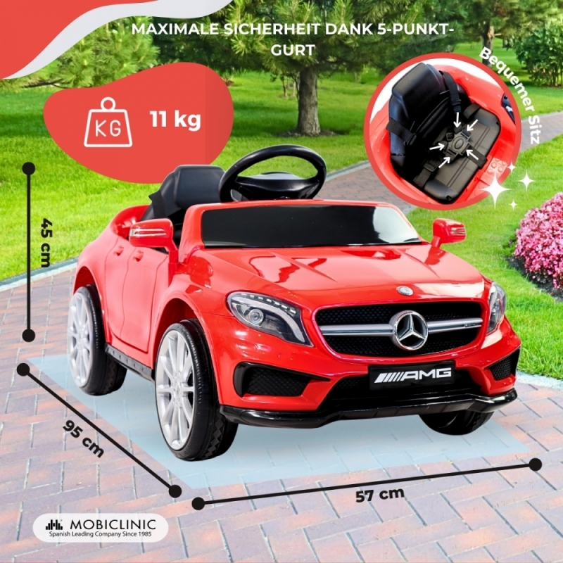 MERCEDES-BENZ-LIZENZ: Dieses Batterieauto für Kinder verfügt über die offizielle Lizenz von Mercedes-Benz, insbesondere das Modell AMG GLA45. Es ist mit einer 12-V-Batterie ausgestattet und kann eine Geschwindigkeit von 3 km/h erreichen. Tatsächlich verfügt es über realistische Oberflächen, die jedes Kind in seinen Bann ziehen werden!