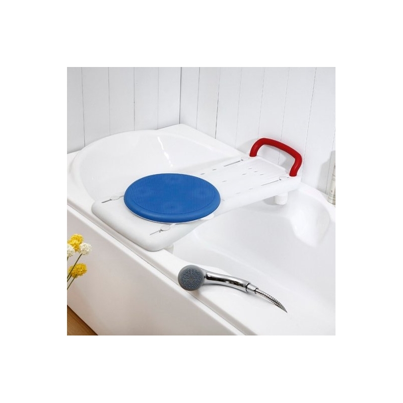Dieses Badebrett ermöglicht einen einfachen und bequemen seitlichen Einstieg in die Badewanne. Es bietet Sicherheit beim Sitzen in der Badewanne und mehr Autonomie beim Baden. Außerdem verfügt das Tablett über einen drehbaren Sitz, der jedes Manöver erleichtert.
