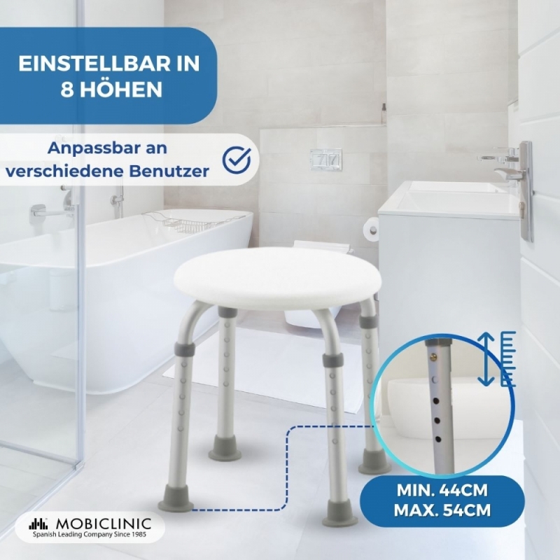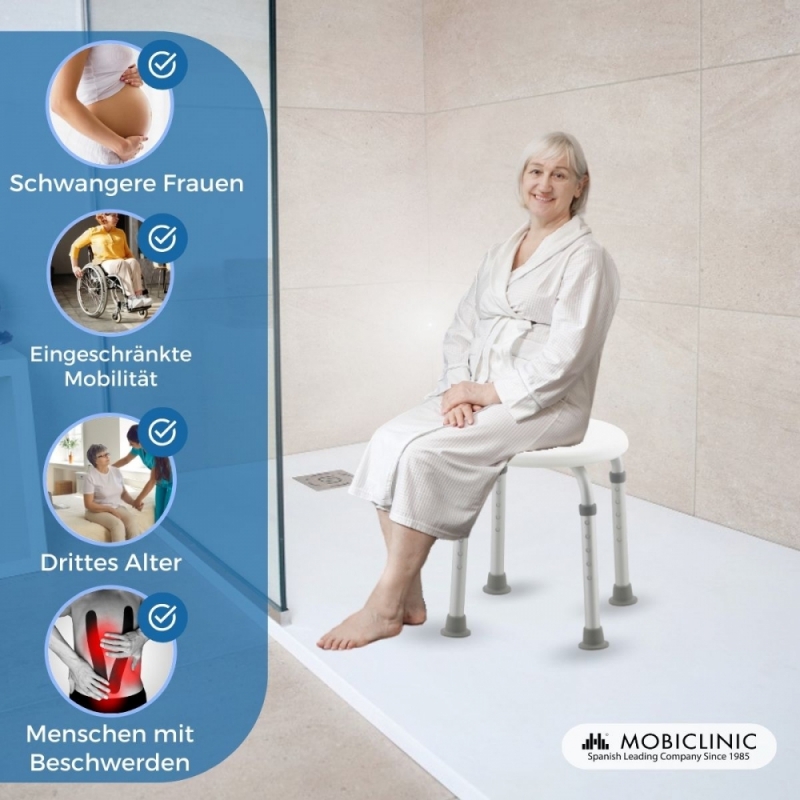 Im Allgemeinen kann es von allen Familienmitgliedern verwendet werden, um eine entspanntere Dusche zu nehmen und die Ruhe bei der täglichen Reinigung zu fördern. Ein höhenverstellbar Hocker für das Badezimmer hat als Ziel, Menschen in der Dusche oder Badewanne Vertrauen und Stabilität zu geben.