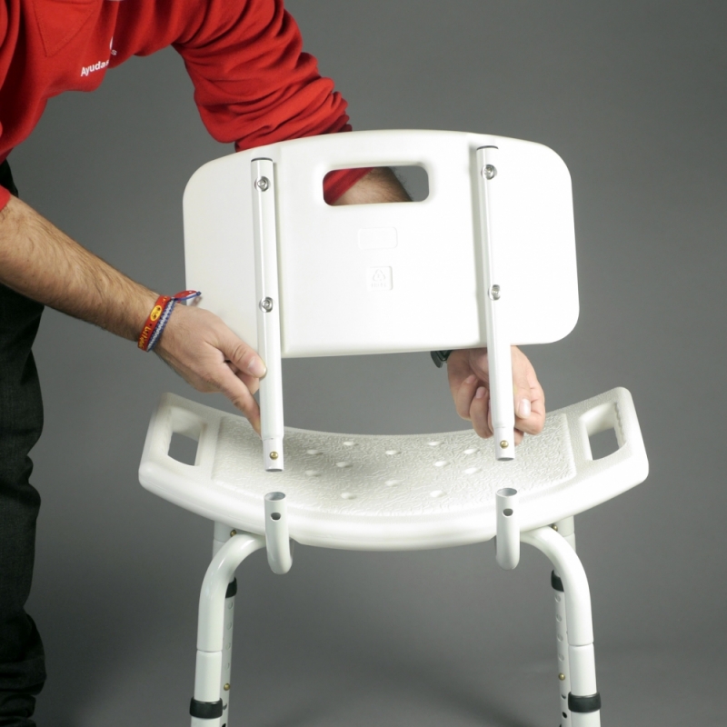 Voll Stuhl mit Kunststoffträger. Der hufeisenförmige Sitz erleichtert Intimhygiene. Seine ausziehbaren Beinen Absolvent erlauben die Sitzhöhe und die Gummihülsen große Stabilität sorgen rutschfest sein. Aus Stahl Aluminium und Kunststoff, ist es komplett aus und sehr leicht. Der Sitz hat dessagüe und integriert Hygiene und Sicherheit Haltegriffen zu verbessern. Gesamtbreite: 43 cm.
