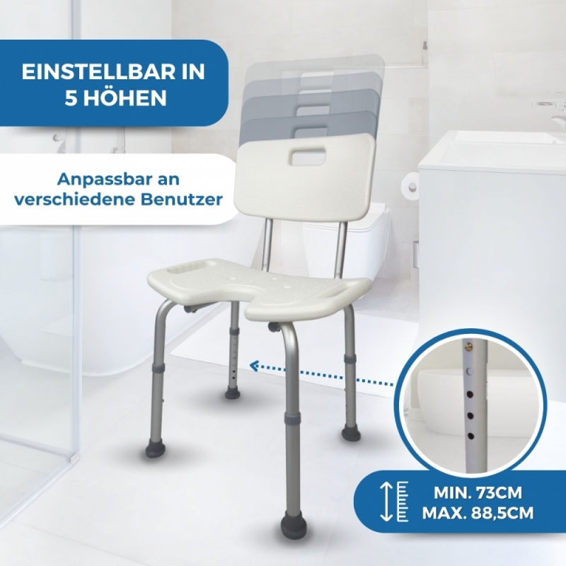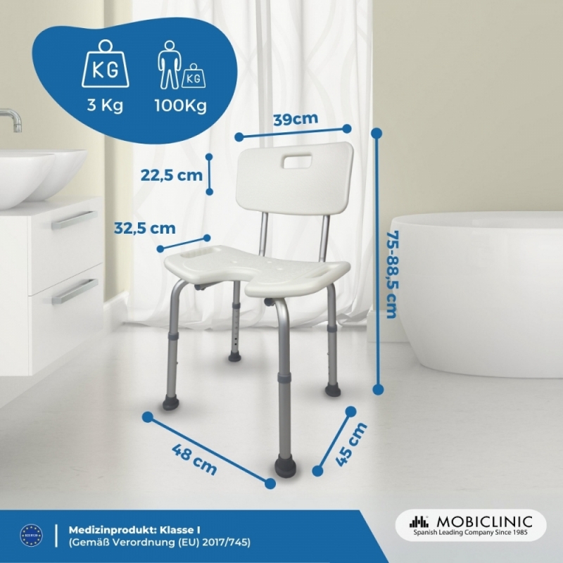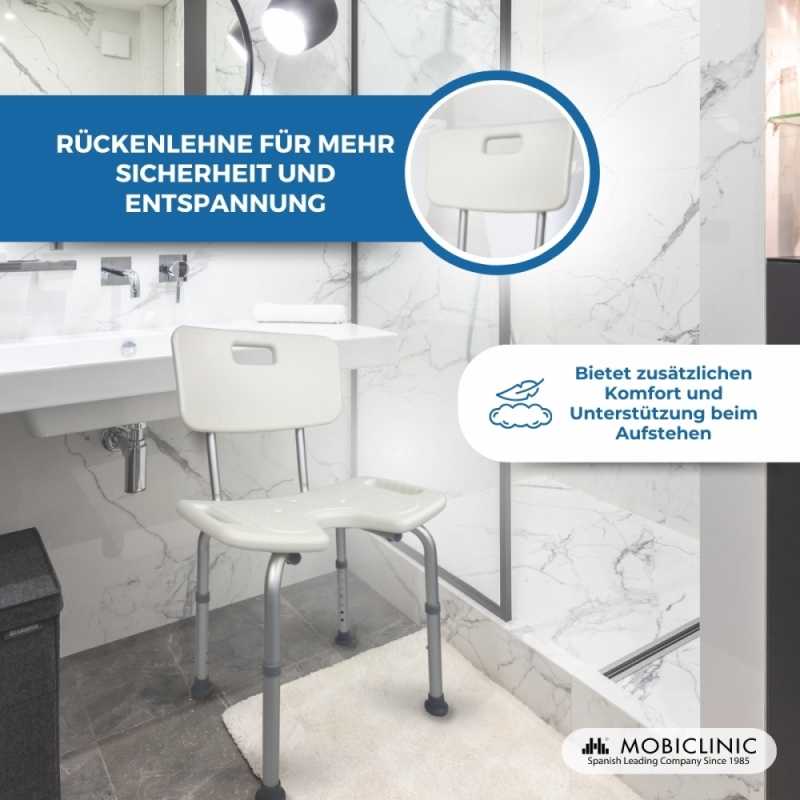 Der 'Marisma'-Badestuhl wurde speziell entwickelt, um dem Benutzer maximale Sicherheit und Komfort zu bieten.