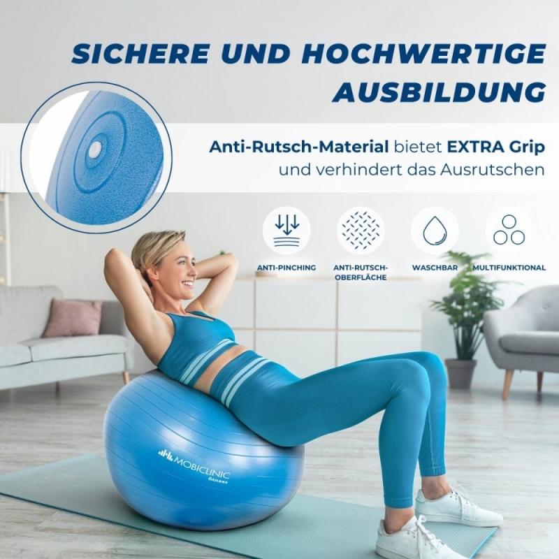 Sein PVC-Material ist umweltfreundlich , da es frei von BPA und Schwermetallen ist. Darüber hinaus handelt es sich um ein verdicktes Material, das bis zu 150 kg tragen kann und über einen Pannenschutz verfügt, der Ihre Übungen sicher und Ihren Gymnastikball sehr langlebig macht.