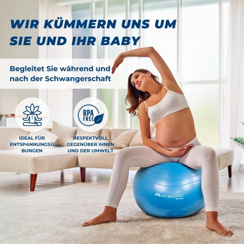 GEBURTSBALL : Ebenso wird er derzeit häufig als Geburtsball in allen Phasen der Mutterschaft verwendet . Es kann vor der Geburt verwendet werden, um Beweglichkeitsübungen im Becken durchzuführen, während der Geburt, um eine Haltung beizubehalten, die es Ihnen ermöglicht, Ihre Beine auf die richtige Art und Weise zu beugen, um den Kanal zu öffnen, ohne die Gelenke zu überlasten, und in der Zeit nach der Geburt zur Erholung und Erholung wieder in Form.