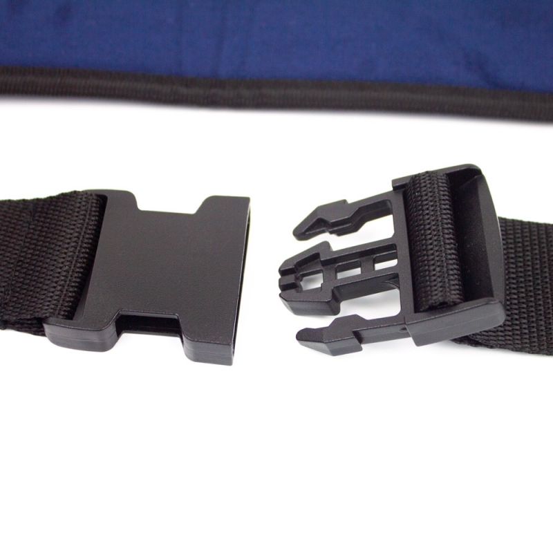 Das Kunststoff-Clip-Befestigungssystem ermöglicht eine sichere, schnelle und verstellbare Befestigung und vermeidet so Knoten auf der Rückseite des Sitzes. Sie ist schnell und einfach anzubringen und lässt sich leicht an den Patienten anpassen.