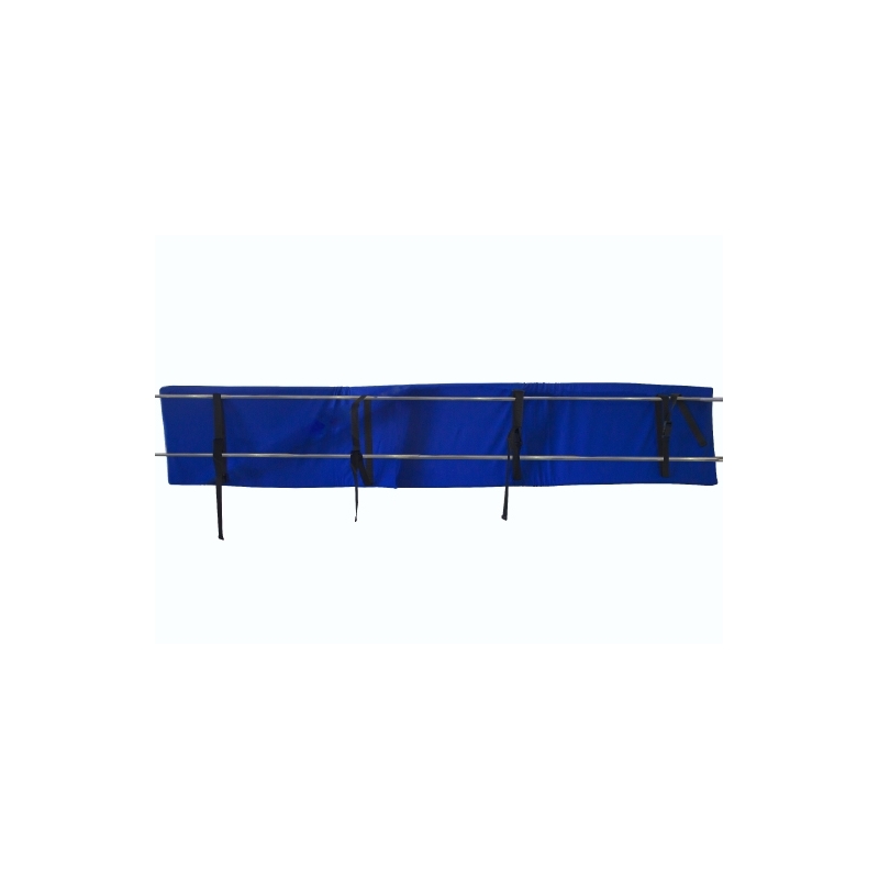 Der gepolsterte Rausfallschutz sorgt dafür, dass der Patient nicht gegen die Holz- oder Metallgitter des Bettes stößt und sich nicht versehentlich zwischen den Gitterstäben einklemmt. Um die Sicherheit des Schienenschutzes zu erhöhen, platzieren Sie den gepolsterten Teil auf der Innenseite der Schienen, wenn diese angehoben sind. Die Befestigungsgurte werden um die Bettgitter herumgeführt und die Clipverschlüsse werden eingehängt.