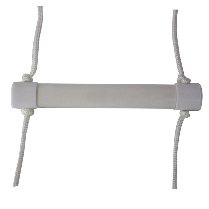 Diese Bettleiter besteht aus vier Stufen aus steifem Kunststoff, die durch einem 18 cm- Nylonseil voneinander entfernt sind, so dass die Person verschiedene Einbaustufen hat. Dieses Hilfsmittel bettlägerige patienten sollte an den Füßen des Bettes befästigt werden oder an den Schwenkrollen des Bettes oder der Krankentrage vorbereitet.