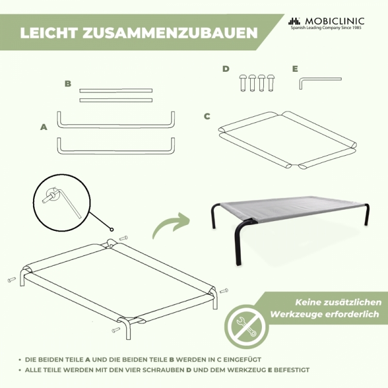 EINFACHE MONTAGE: Dieses erhöhte Hundebett verfügt über ein einfaches und sehr intuitives Aufbaudesign, sodass Sie es in nur wenigen Minuten und ohne Werkzeug fertig haben.