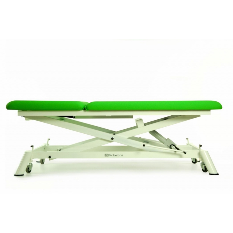 Hydraulische Bobath Untersuchungsliege, Typ Schere, mit geradem Anstieg und ohne Seitenverschiebung, mit 2 Zonen und einziehbaren Rollen. Maße: 190x100 cm.