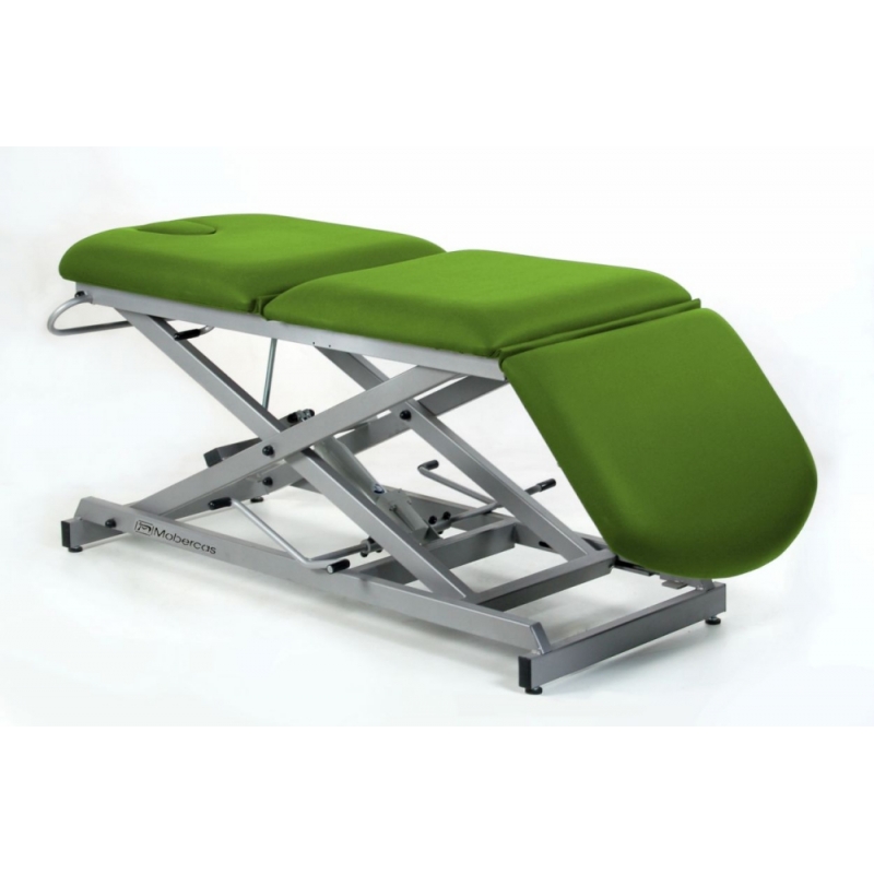 3-teiliger hydraulischer Behandlungsstuhl mit geradem Anstieg ohne Seitenverschiebung, mit Rollenhalter und Gesichtsloch.