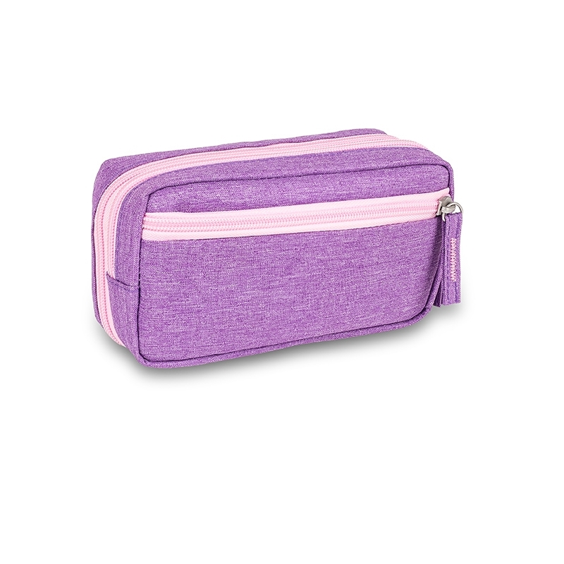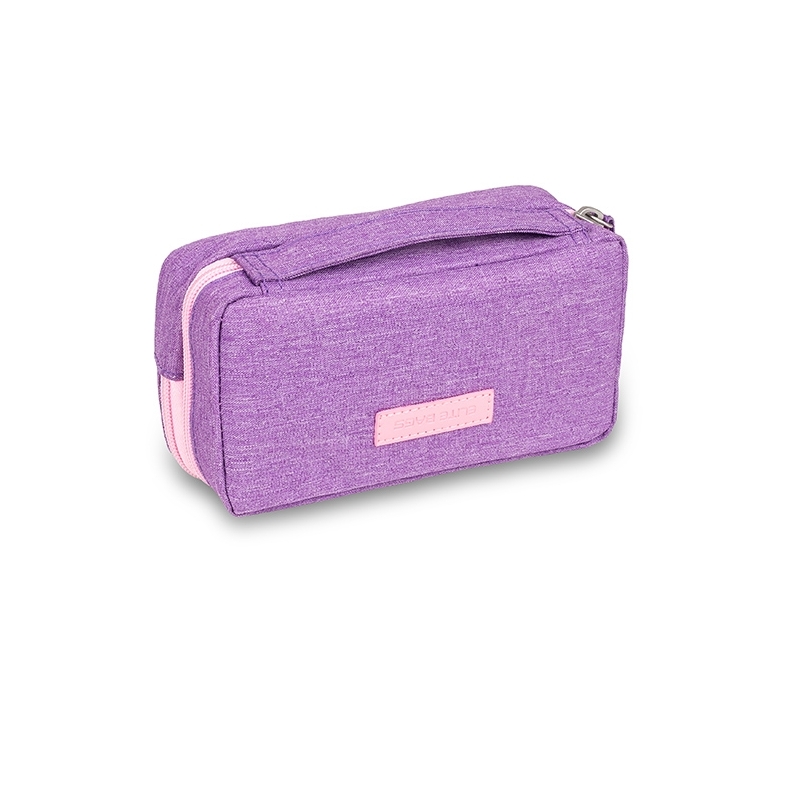 Diabetikertasche mit exklusivem, modernem und elegantem Design, aus hochwertigem lila Stoff. Diese Kühltasche für Insulin ermöglicht, alle notwendigen Diabetes Zubehör optimal zu transportieren. Diese Medikamenten Kühltasche besteht aus mehreren Fächern wie einer Netztasche, einer Klettertasche, einem Gummiband für Insulin Pen, einem Gummiband für das Blutzuckermessgerät und einer isothermen Tasche, um im Sommer Insulin kalt bewahren.