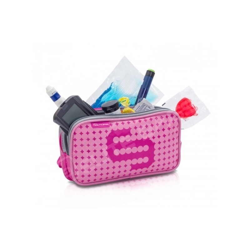Auf der Vorderseite hat es eine Tasche, die für den Transport vom Diabetes Diagnosematerial entwickelt wurde und enthält: Blutzuckermessgerät, Lanzetten, Teststreifen, usw. Die Rückseite der Tasche ist sowohl für das kalte Gel als auch die Insulin-Applikatoren gedacht und gewährleistet die richtige Temperatur, auch im Sommer.
