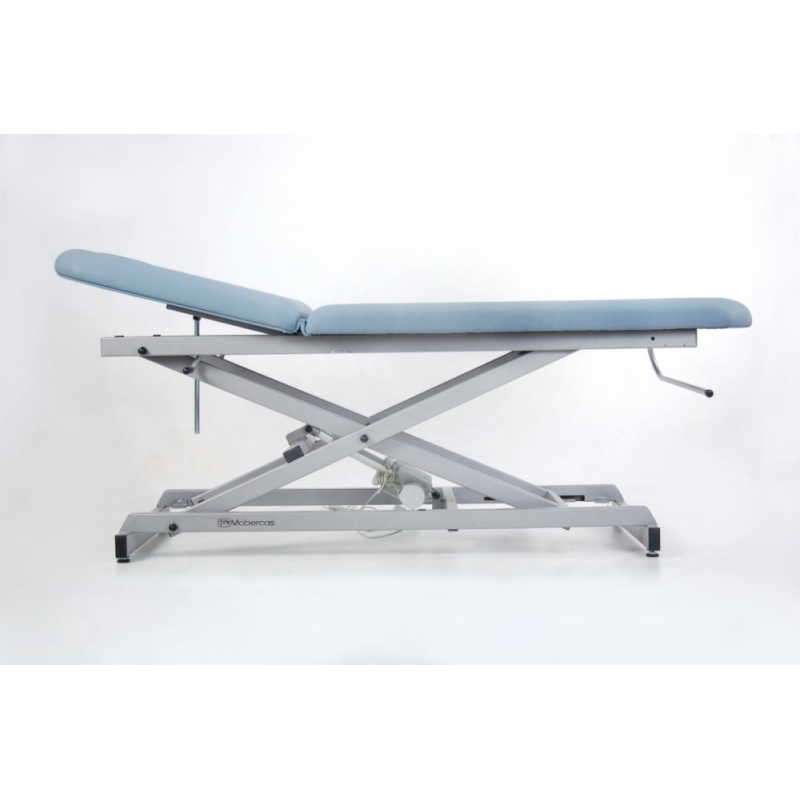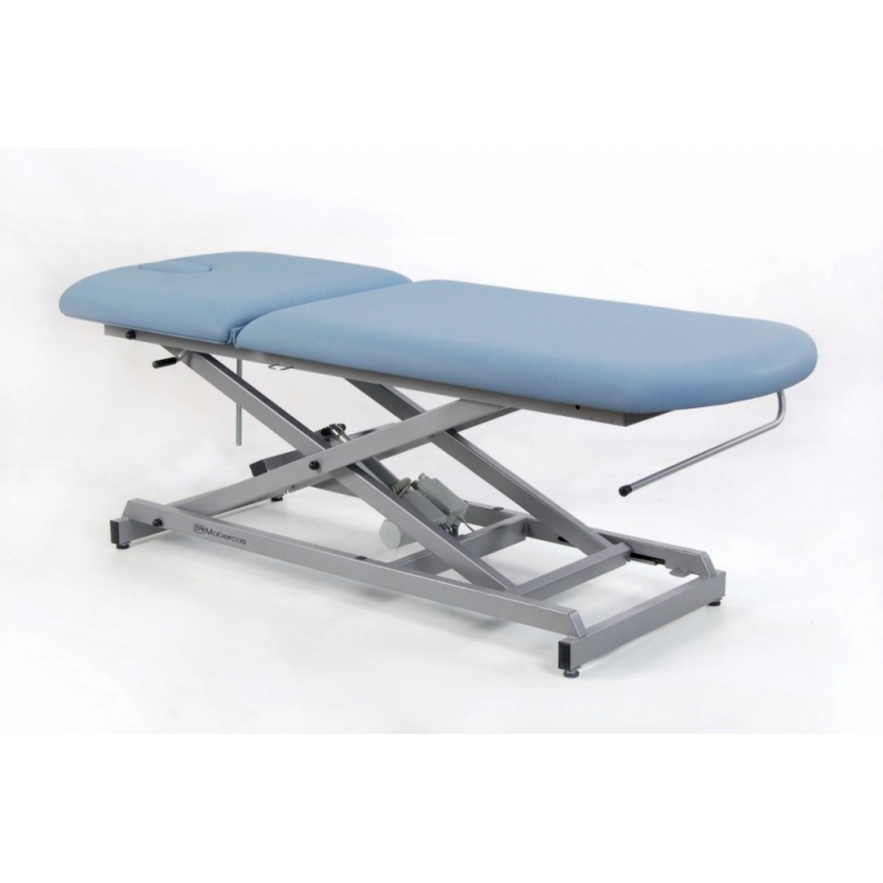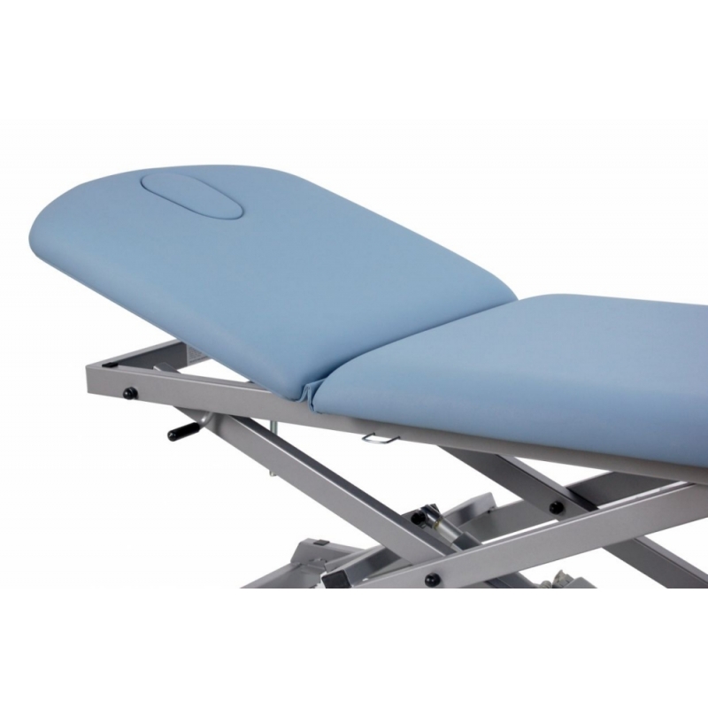 2-teilige elektrische Untersuchungsliege mit geradem Aufgang ohne Seitenverschiebung, Rollenhalter, Gesichtsloch.