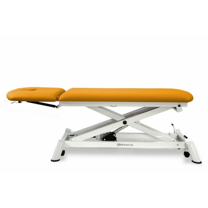 2-teilige elektrische Untersuchungsliege, mit Rollenhalter, Gesichtsloch und einziehbaren Rollen.
