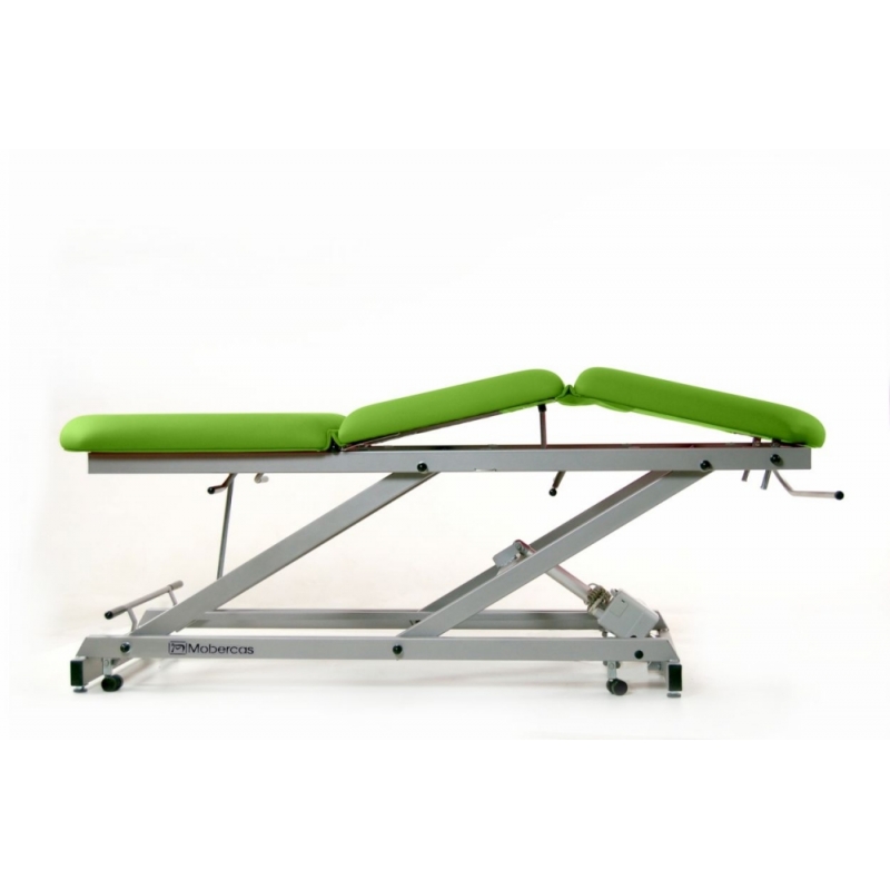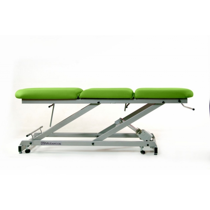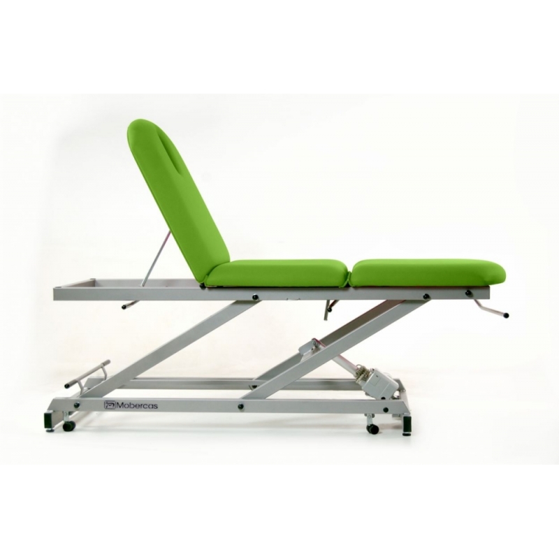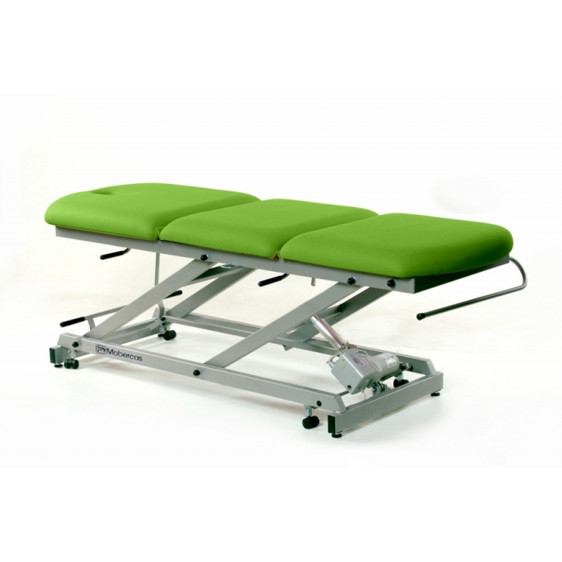 Elektrische Untersuchungsliege mit 3 Zonen und Mittelfalz, Rollenhalter, Gesichtsloch und versenkbaren Rollen.