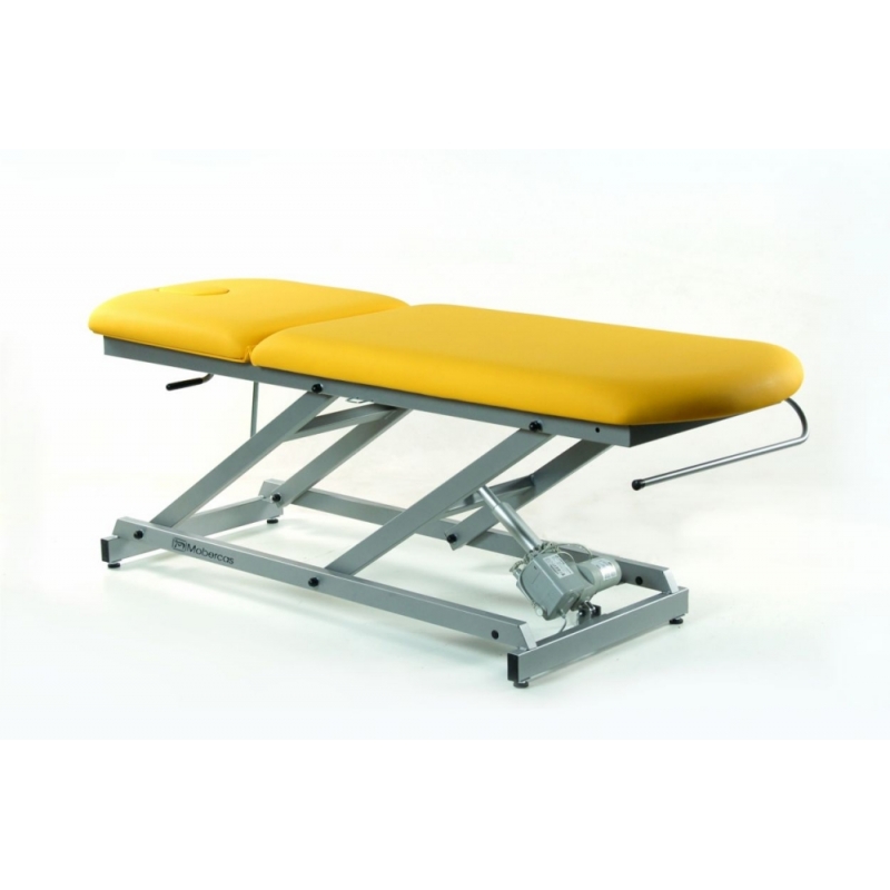 2-teilige elektrische Untersuchungsliege mit Rollenhalter und Gesichtsloch.
