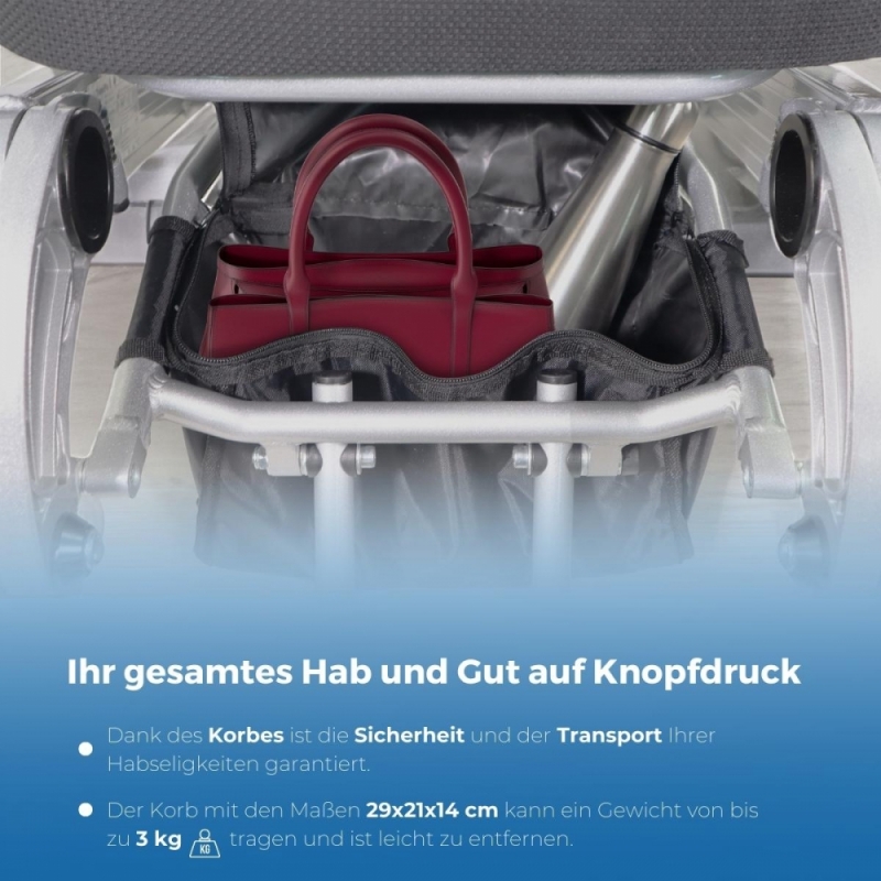 FÜR VIELFÄLTIGE BENUTZER GEEIGNET: Das Gesamtgewicht dieses Elektrorollstuhls (ohne Batterien) beträgt 24,8 kg. Dieses Modell kann außerdem ein Maximalgewicht von bis zu 120 kg tragen.
