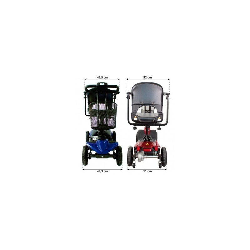 Es handelt sich um behindertengerechte Elektromobile für Senioren mit pannensicheren Rädern und kippsicheren Hinterrädern, so dass in Kurven und an Steigungen keine Gefahr des Umkippens besteht. Die Räder haben ein verstärktes Chassis, um das Durchbiegen und Rollen der Reifen zu verringern.