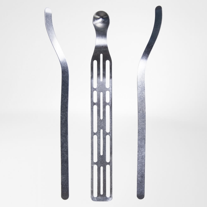 Drei anatomisch vorgeformte Aluminiumstangen fixieren das Handgelenk in einer funktionellen Position und entlasten es. Sie reichen bis oberhalb des Unterarms und schränken die Streck-, Beuge- und Drehbewegungen der Hand mit dem längsten Hebel ein.