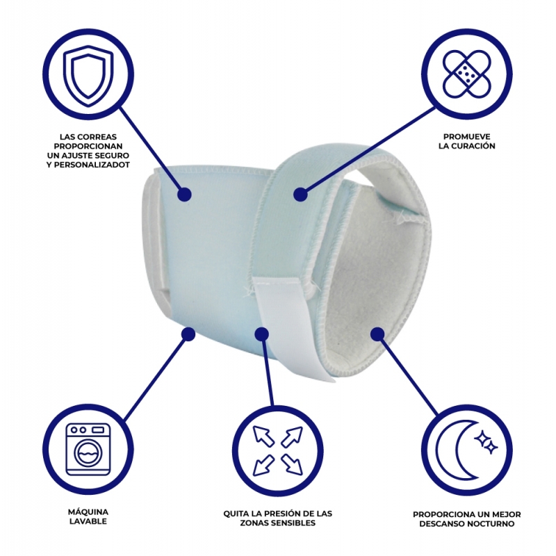 Hergestellt aus angenehmem 7 mm dickem Schaumstoff. Die Außenseite ist mit Velours gefüttert, so dass der Klettverschluss auf der gesamten Oberfläche angebracht werden kann und das Gerät auf die gewünschte Größe eingestellt werden kann, um den richtigen Halt und Komfort zu gewährleisten. Es kann sowohl am Ellenbogen als auch an der Ferse und auf beiden Seiten des Körpers eingesetzt werden.