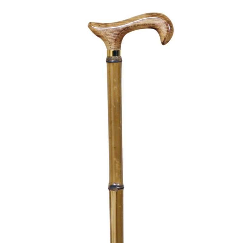 Diese klassische braune Krücke aus Bambus ermöglicht es dem Benutzer, sich selbständig fortzubewegen, und verhilft ihm zu einer guten, dynamischen und aktiven Lebensqualität.