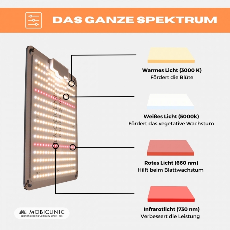 INNOVATIVES UND PRAKTISCHES DESIGN: Unsere Growlight-Wachstumsleuchte ist auf Komfort ausgelegt und verfügt über ein abnehmbares Netzteil. Die Powerbox verfügt über einen speziellen Knopf, mit dem Sie das Lichtspektrum vollständig steuern können.