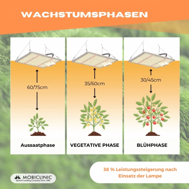 PFLEGEN SIE IHRE PFLANZEN: Das Growlight-Pflanzenlicht passt sich den spezifischen Bedürfnissen Ihrer Pflanzen an, fördert die Photosynthese und sorgt für optimale Gesundheit. Erfahrungsberichte unserer Benutzer belegen eine erstaunliche Ertragssteigerung von 38 % nach dem Umstieg auf unsere Wachstumslampe. Mit einer beeindruckenden Lichtleistung von bis zu 2,8 mol/J sind Ihre Pflanzen in den besten Händen.