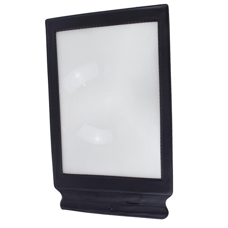 Es hat keine Stütze, darum benutzt es man direkt über den Tisch oder die Dokumente. Das hilft eine bequemer Lesen zu machen, weil man es nicht den ganzen Zeit halten muss. Diese Sehhilfe ist flexibel und kann horizontal und vertikal adaptieren. Man kann es links und rechts abbiegen, um eine besser Adaptierung der Lesen.