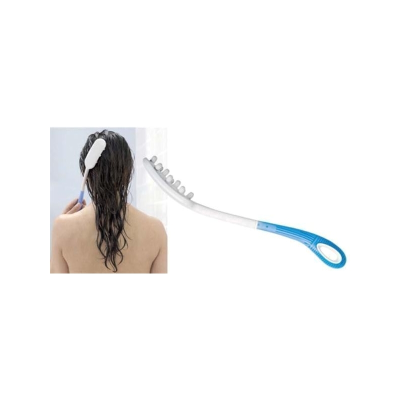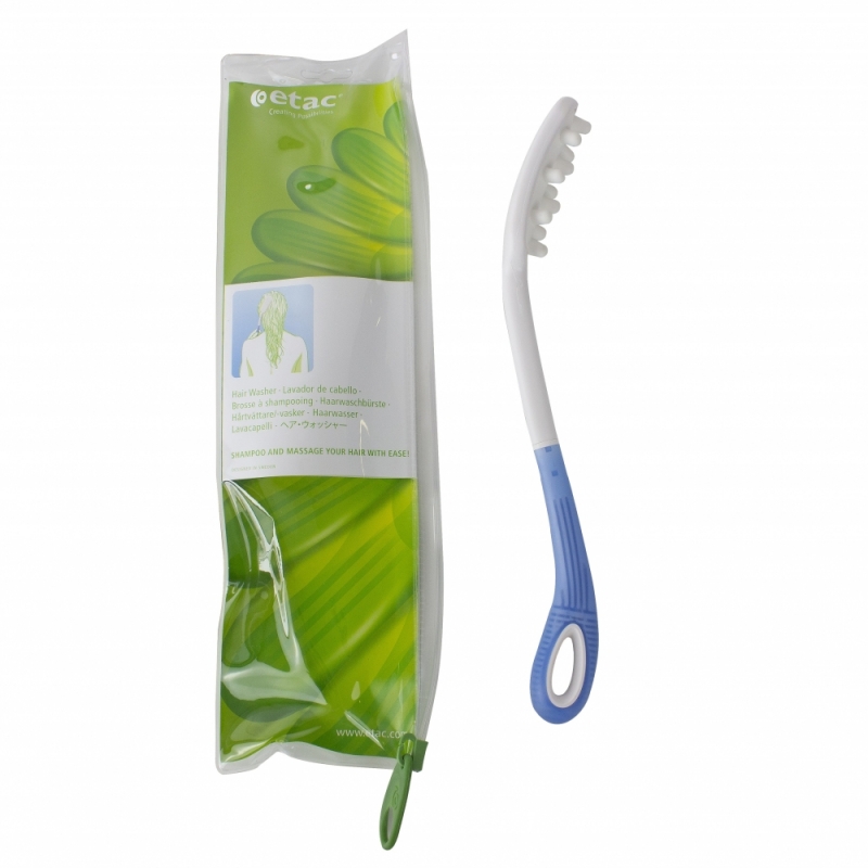 Diese Waschhilfe für Senioren erleichtert Personen mit Bewegungseinschränkungen die tägliche Haarpflege. Um nicht über lange Zeit die Hände über den Kopf halten zu müssen, können Sie stattdessen diese Bürste mit langem Stiel verwenden, um Shampoo aufzutragen und wiedeauszuwaschen. Die Form und die Länge ermöglichen es, diese Tätigkeit ohne viel Anstrengung und gründlich auszuführen zu können. Außerdem fühlt sich das Haare waschen mit den kleinen, dicken Borsten der Bürste an, wie eine angenehme Kopfmassage.