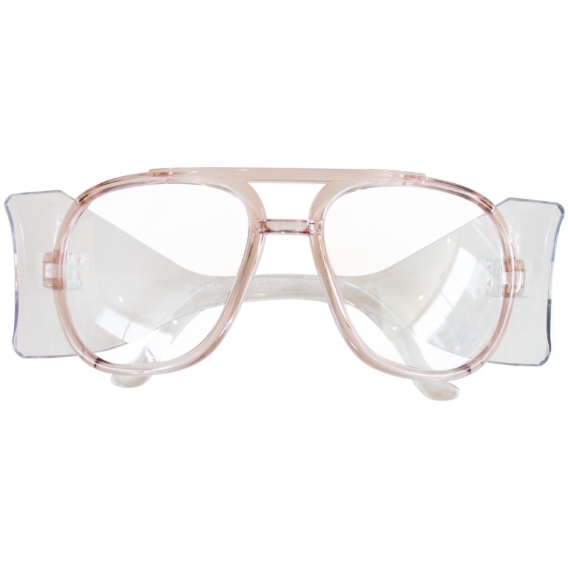 Klare, kratzfeste Polycarbonatgläser, Vorderseite bernsteinfarben.