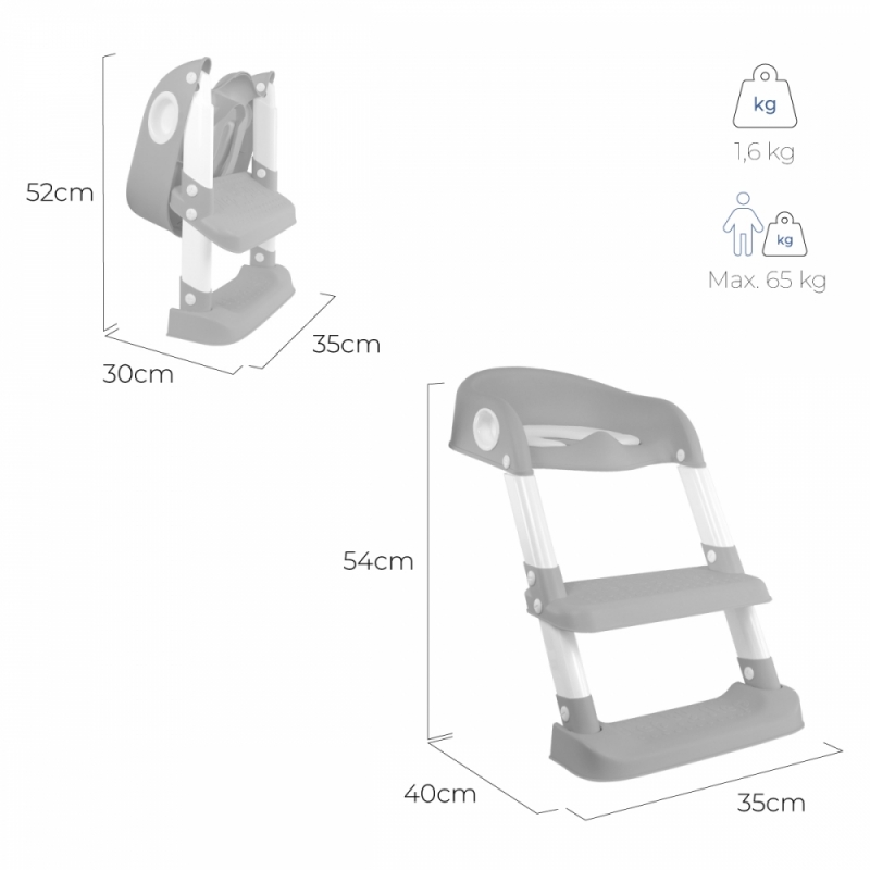Dank seines Gewichts und seiner Abmessungen ist er sehr einfach und leicht zu bewegen und neben der Toilette zu platzieren. Darüber hinaus ist die Montage in wenigen Minuten mit sicheren Materialien erledigt, da kein Werkzeug verwendet werden muss, sodass die Montage des Lala Kinder-Toilettenlifts sehr einfach ist.