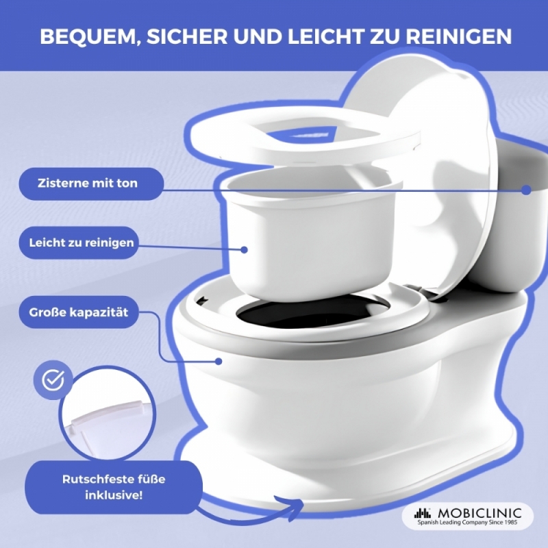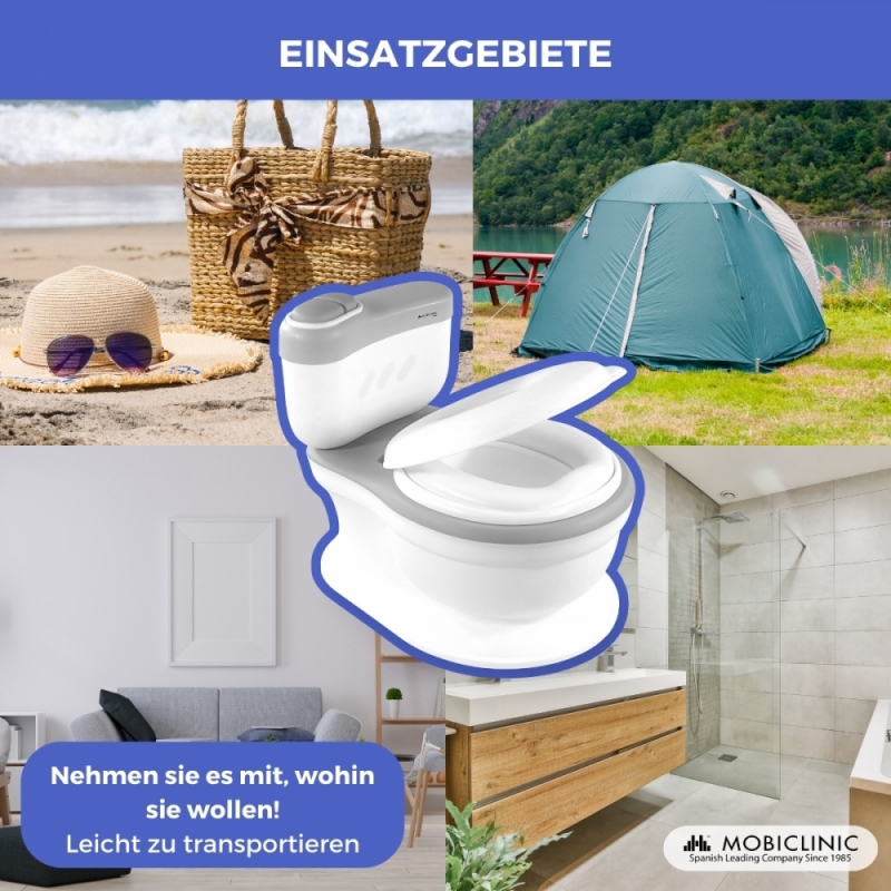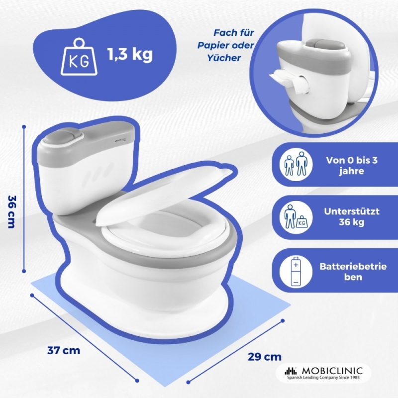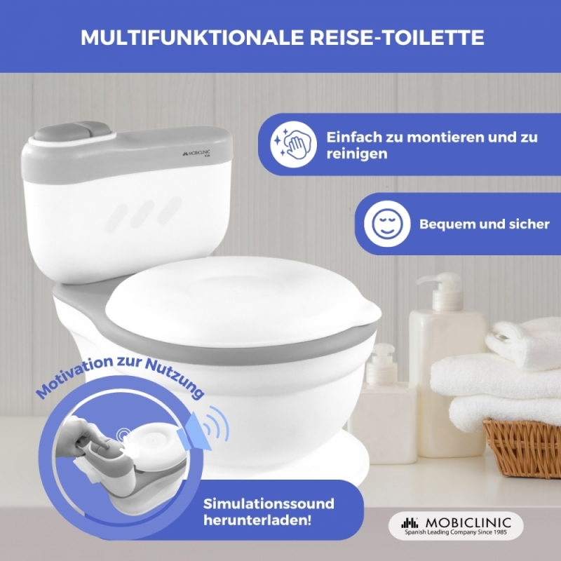 Kindertoilette | Mit Sound | Abnehmbarer Eimer | Von 1 bis 6 Jahren | Rutschfest | Grau | ToiKid | Mobiclinic