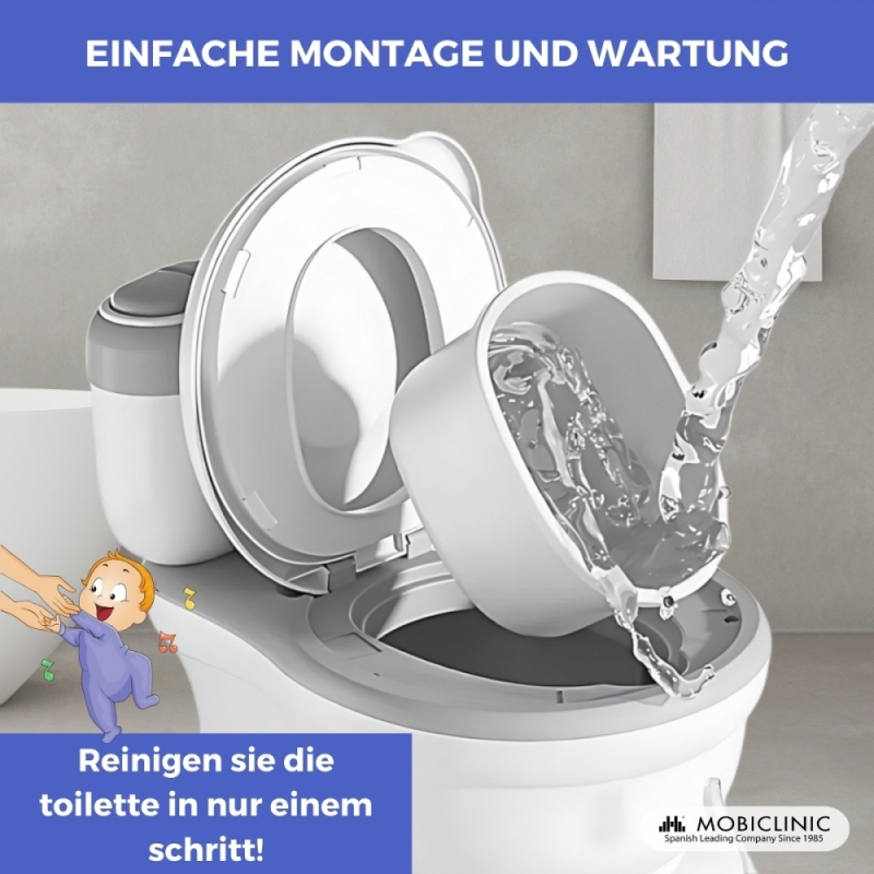 Es ist ein wirklich leicht zu reinigendes Produkt, da Sie nur den abnehmbaren Eimer entfernen müssen. Mit ToiKid haben Sie dank der Überwachung (von 1 bis 6 Jahren) eine langfristige Investition, sodass sich das Baby lange an die Nutzung gewöhnen kann.
