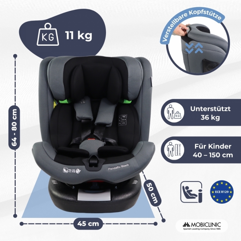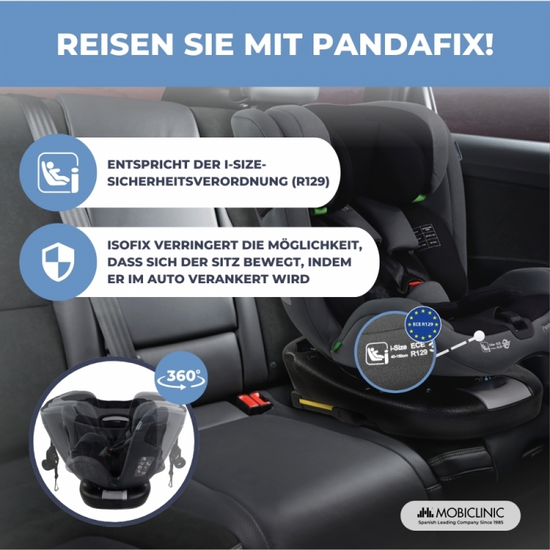 Der Kinderautositz Pandafix vereint Sicherheit, Komfort und Vielseitigkeit und wird so zum idealen Begleiter für jede Wachstumsphase eines Kindes. Dieser Stuhl wurde für den Schutz von 167 Tagen bis etwa 12 Jahren (40–150 cm/36 kg) entwickelt und zeichnet sich durch seine fortschrittliche Technologie und seine Fähigkeit aus, sich an die sich ändernden Bedürfnisse des Kindes und der Familie anzupassen.