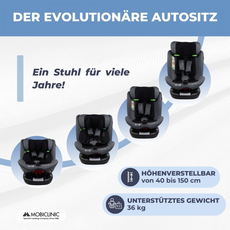 Seine Praktikabilität, Haltbarkeit und fortschrittlichen Funktionen machen diesen Stuhl zu einer langfristigen Investition, um das Wertvollste zu schützen: die Sicherheit und den Komfort Ihrer Kleinen auf jeder Reise.